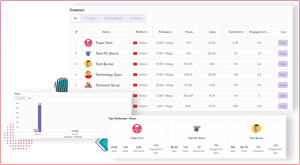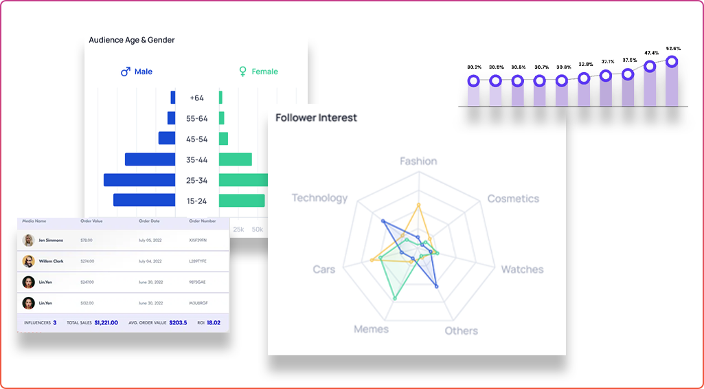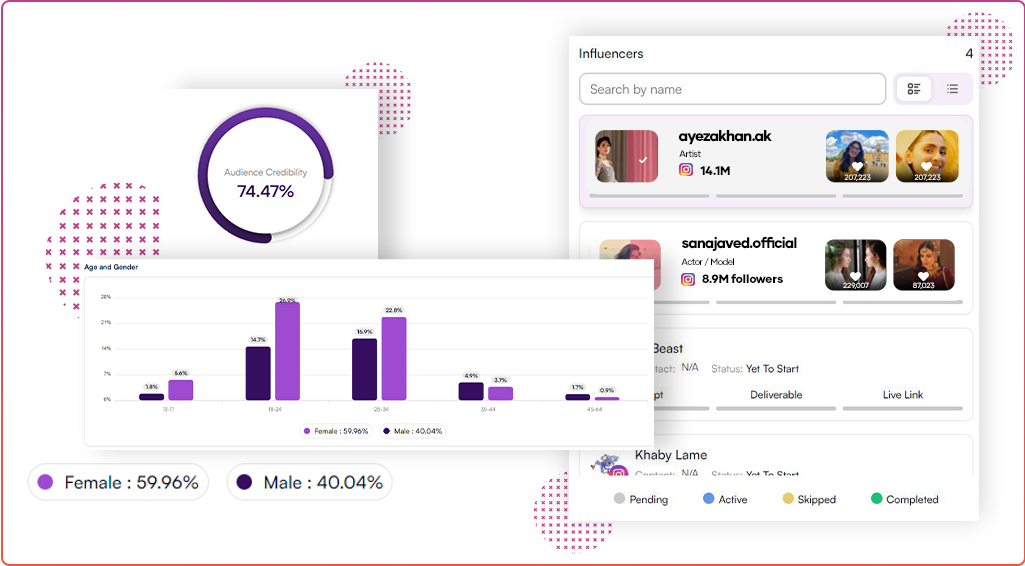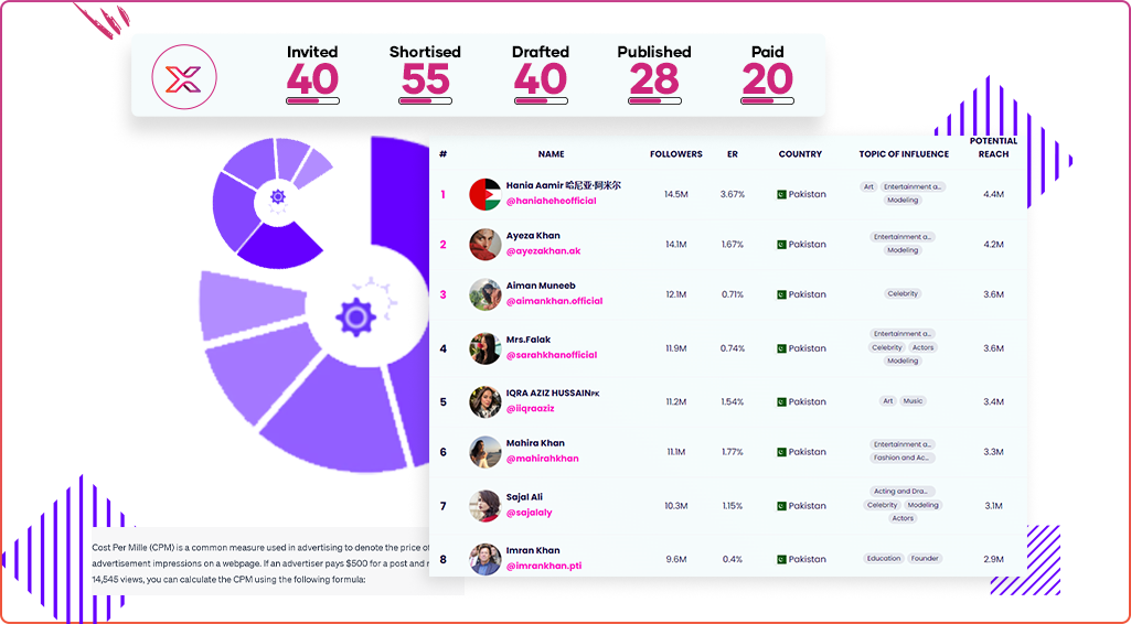Find influencers from our database of over 200 million worldwide, filtering them by social metrics,